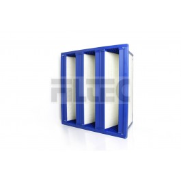 Diese leistungsstarken Kompaktfilter stellen prinzipiell eine Kombination aus Taschenfiltern und V-Filterzellen dar. Das Verhältnis von Anström- zur Filtermedienfläche beträgt ca. 1:50. Dadurch erreichen Kompaktfilter überdurchschnittliche Standzeiten bei hohen Konzentrationen an besonders feinen Partikeln. Als Filtermedien werden grundsätzlich synthetische Mikrospinnvliese verwendet. Die Konstruktion gewährleistet eine hohe Stabilität, Korrosionserscheinungen sind ausgeschlossen. Sie werden als Vor- oder Hauptfilter eingesetzt, zur Abscheidung von Schwebstoffen bzw. toxischen Stäuben, sowie Aerosolen aus der Zu- oder Abluft, insbesondere dann, wenn große Volumenströme und lange Standzeiten gefordert werden. Der Berstdruck dieser Ausführung liegt deutlich oberhalb von 3000 Pa.